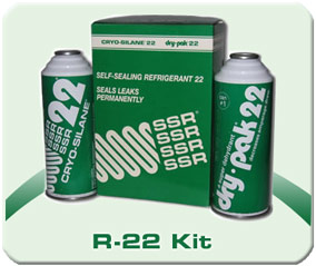 Our two Self-Sealing Kits are available for both MOBILE and STATIONARY systems. Our high-tech process of sealants Cryoseal® ( Mobile) and Cryo-Silane® (Stationary) when added to a leaking air conditioning or refrigeration system reacts with air and moisture at the point of the leak and forms a seal. Our company’s SSR Kits are designed to SEAL and PERMANENTLY repair LEAKS in evaporators, condensers and fittings. Our SSR Kits will repair the leaks without the necessity to locate them.
